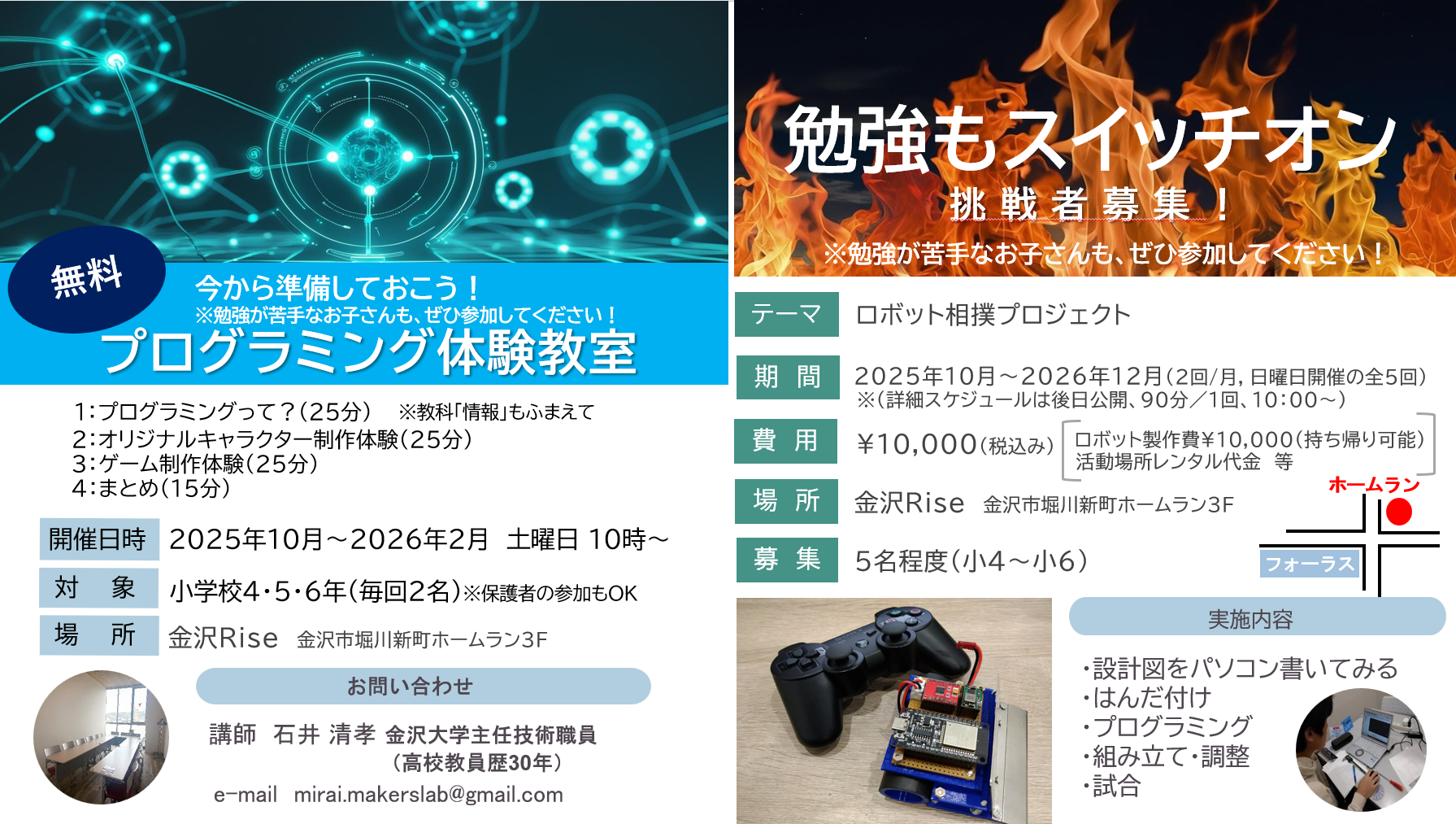 AI教室や見学会(現在はラボ実施の火曜日のみ)を開催中です。
